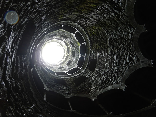 Это колодец посвящения (инициализации) - самая мистическая из всех загадок сада. Спиральная галерея, идущая вокруг него, имеет 9 уровней, поддерживаемых резными каменными колоннами. Эти уровни символизируют 9 кругов ада, 9 кругов чистилища и 9 кругов рая, описанных Данте. На дне колодца выложен огромный крест тамплиеров, вписанный в восьмиконечную звезду - герб Монтейру.