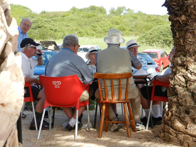 Мегалитов мы не нашли. А судя по приписке на указателе, не нашли не только мы. Зато провели пару часов в прибрежном ресторане, попивая сок, купаясь, рассматривая посетителей…